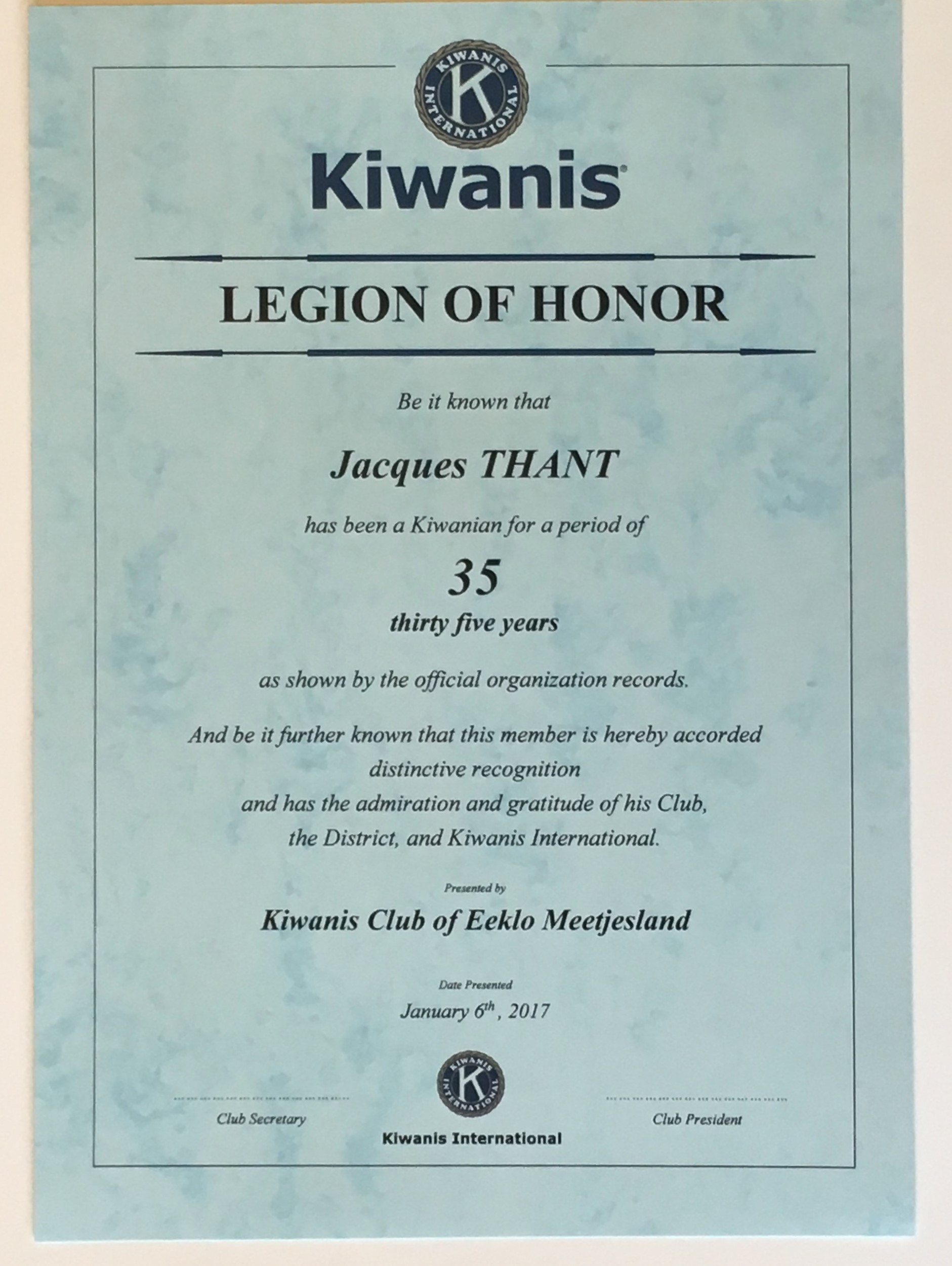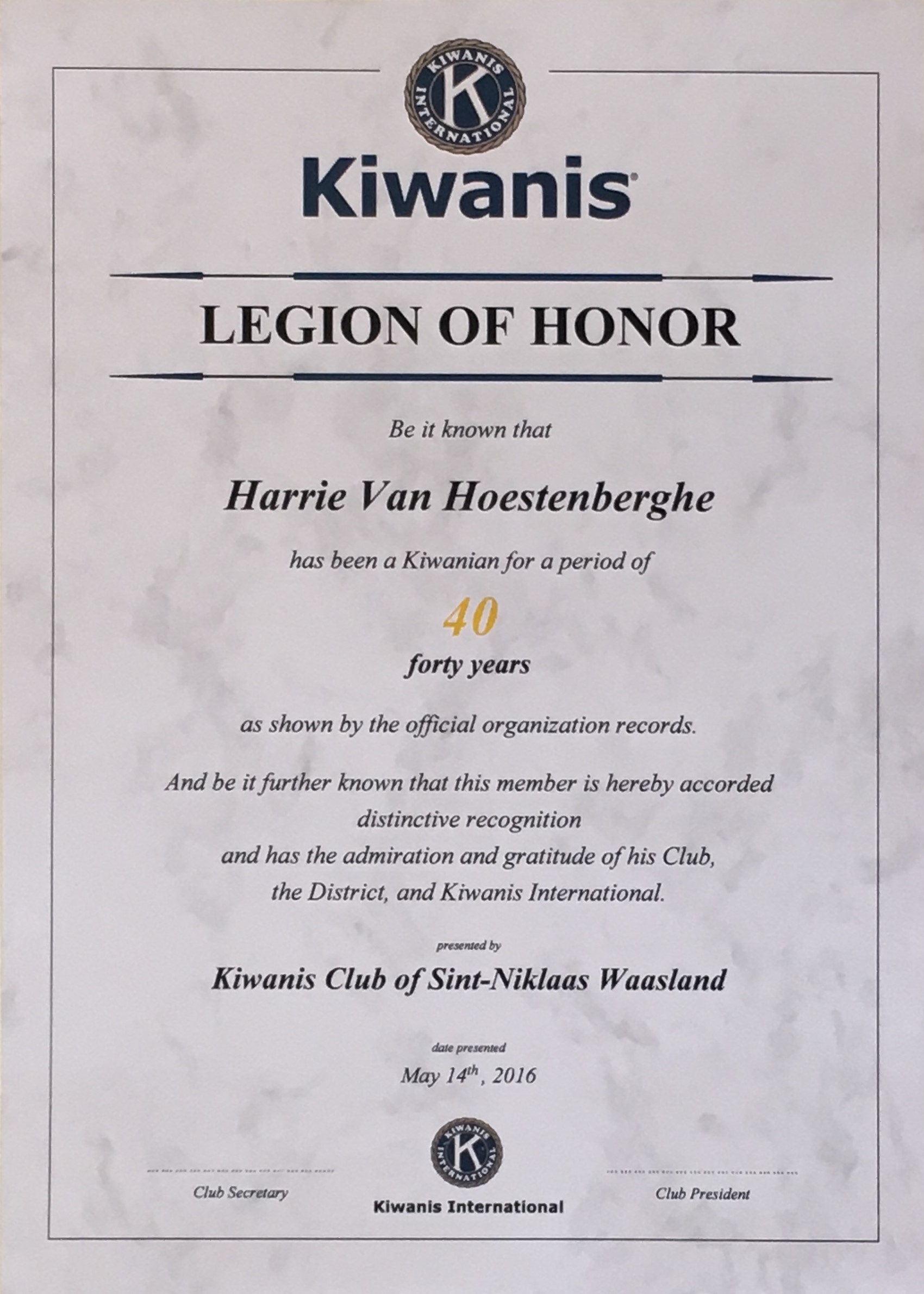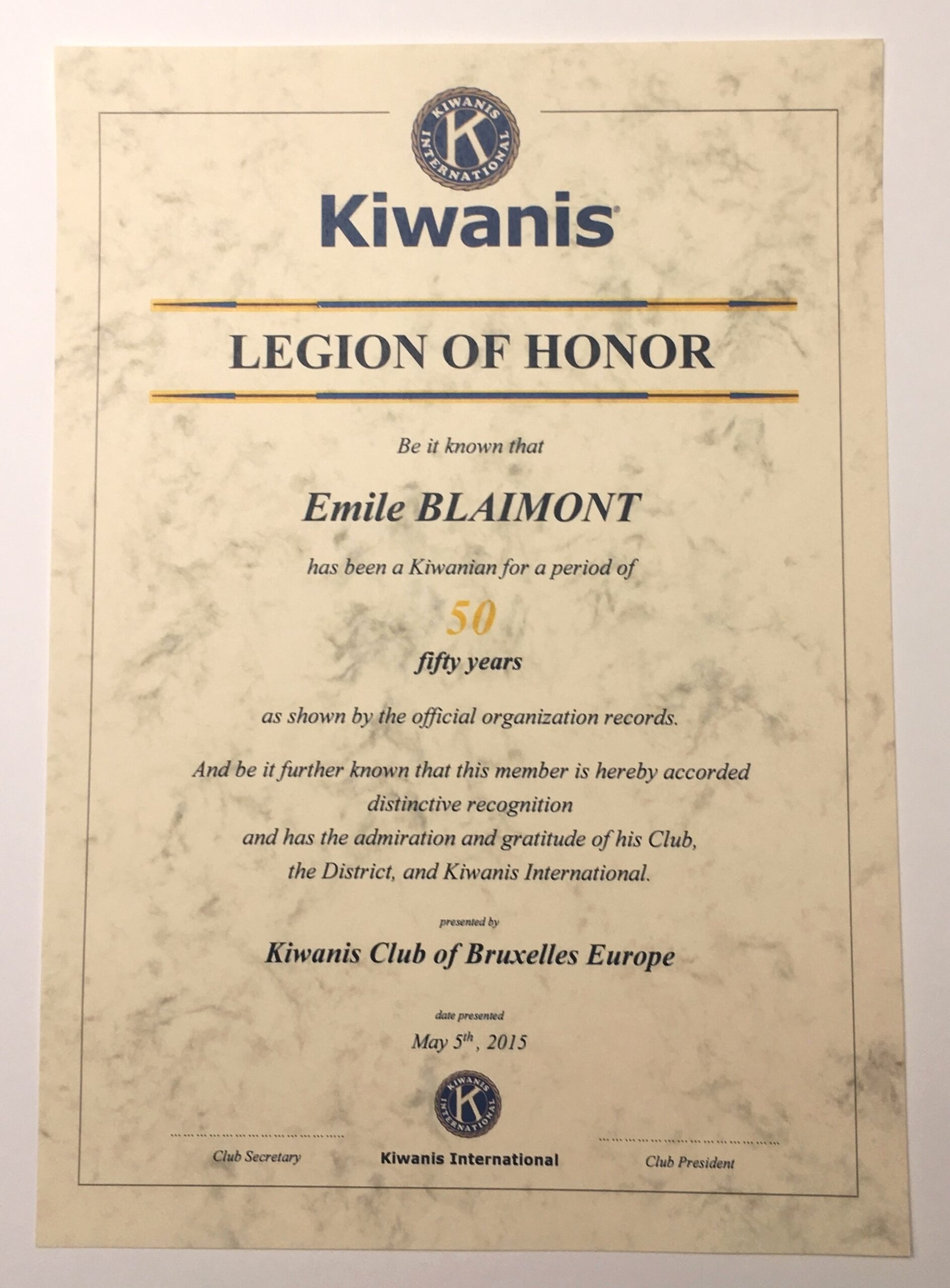 Certificaat “legion of honnor”