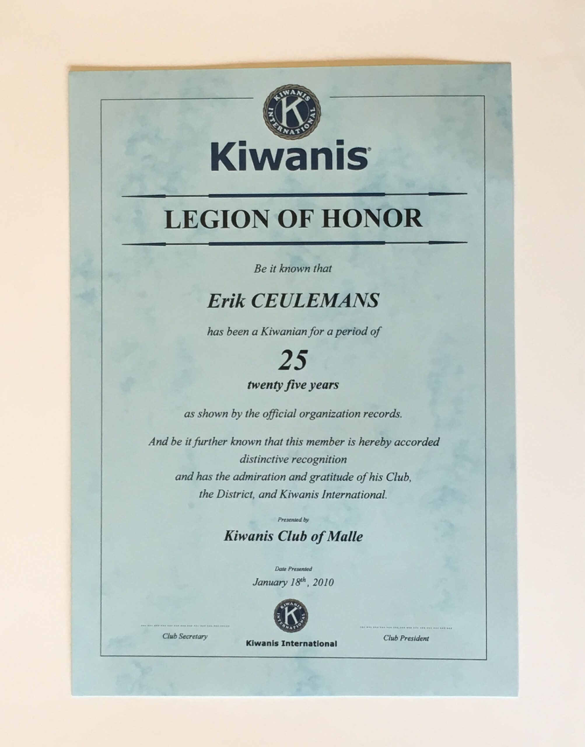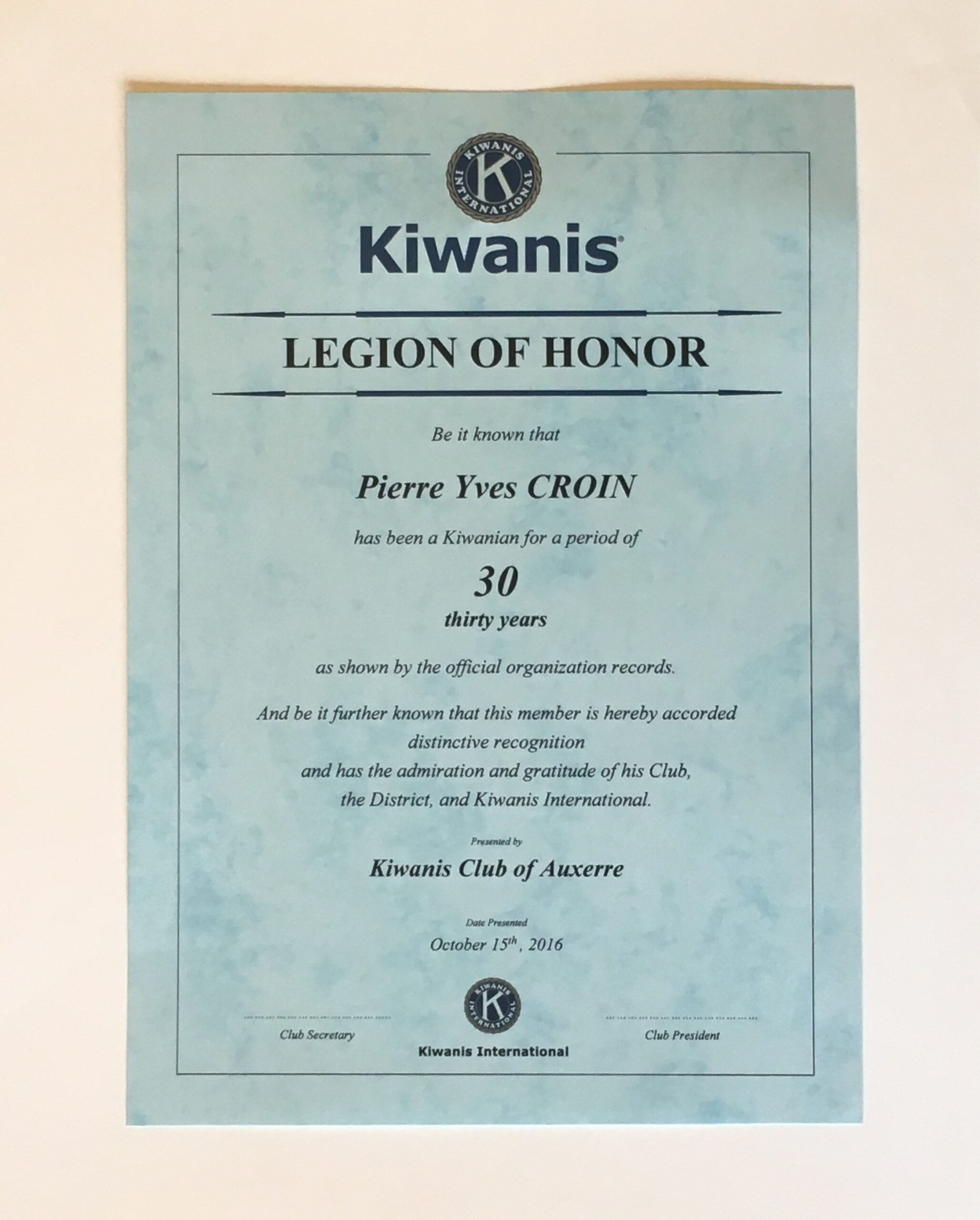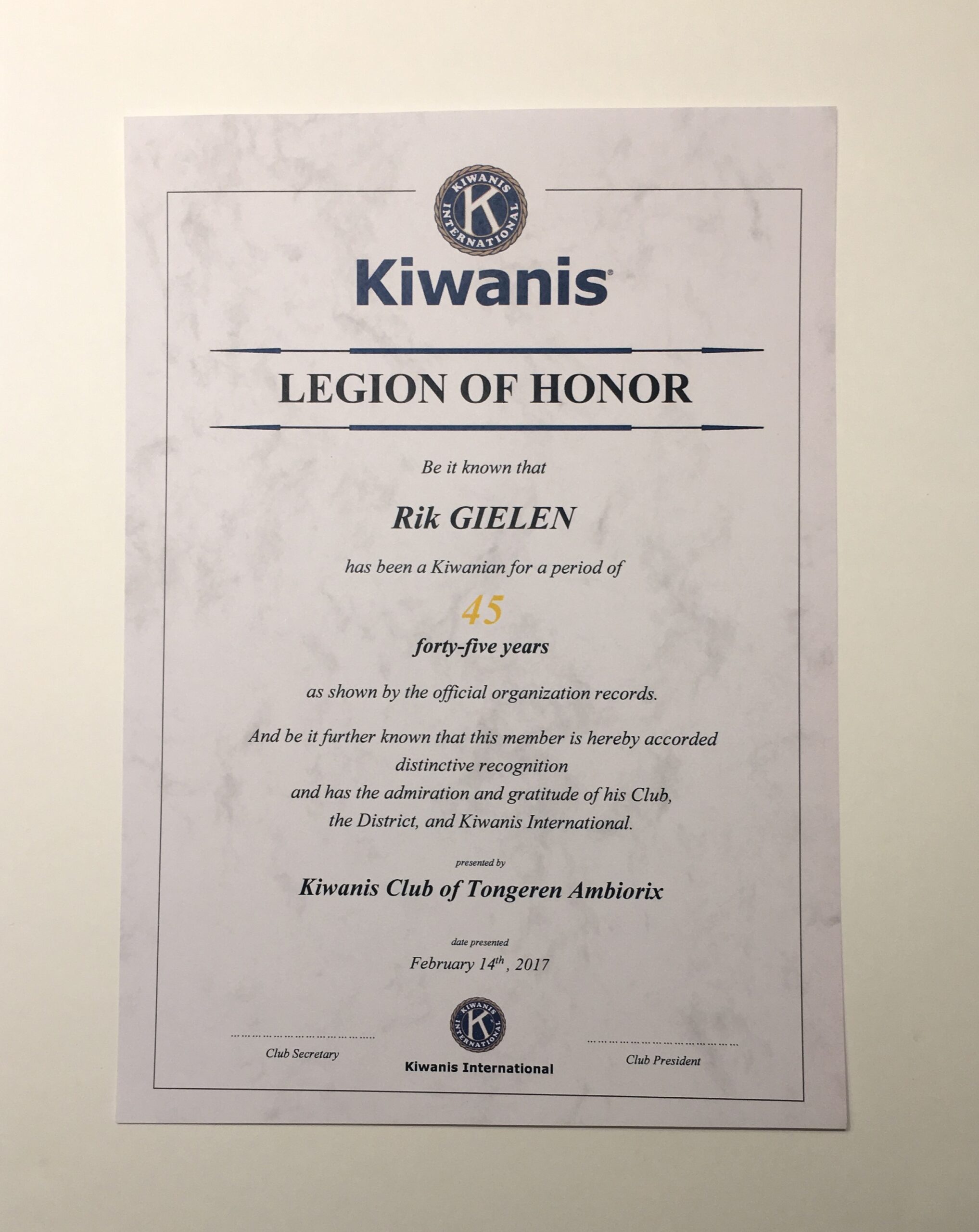 Certificaat “legion of honnor”
